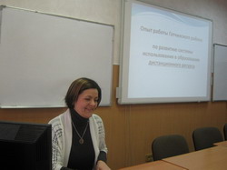 С презентацией опыта работы Гатчинского района по развитию системы использования в образовательной практике дистанционного ресурса выступили методисты МБОУДО «Центр информационных технологий» Лебединец Е.Л. и Мажарцева О.Ф.