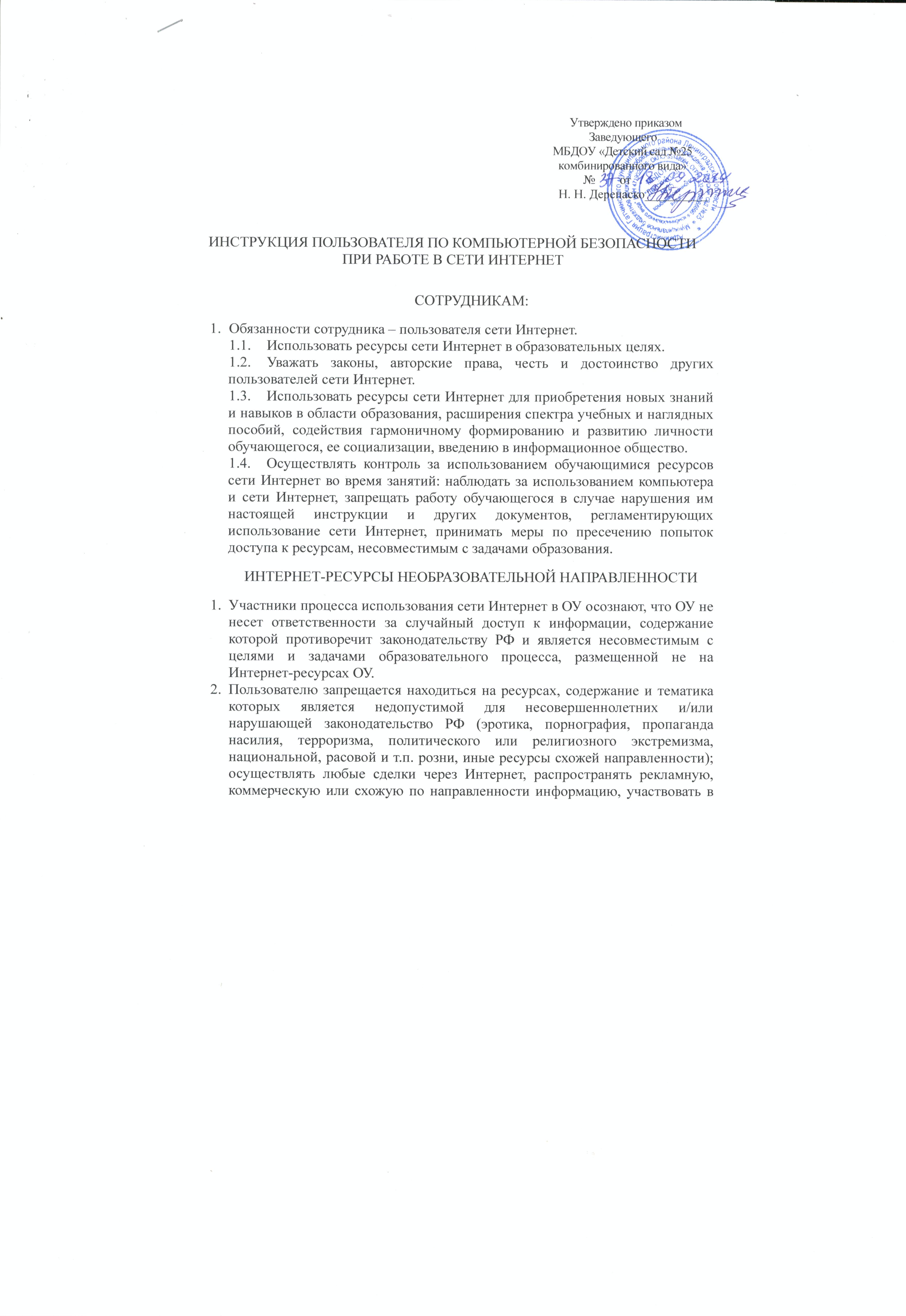 Инструкция пользователя по компьютерной безопасности при работе в сети интернет (титульный лист)