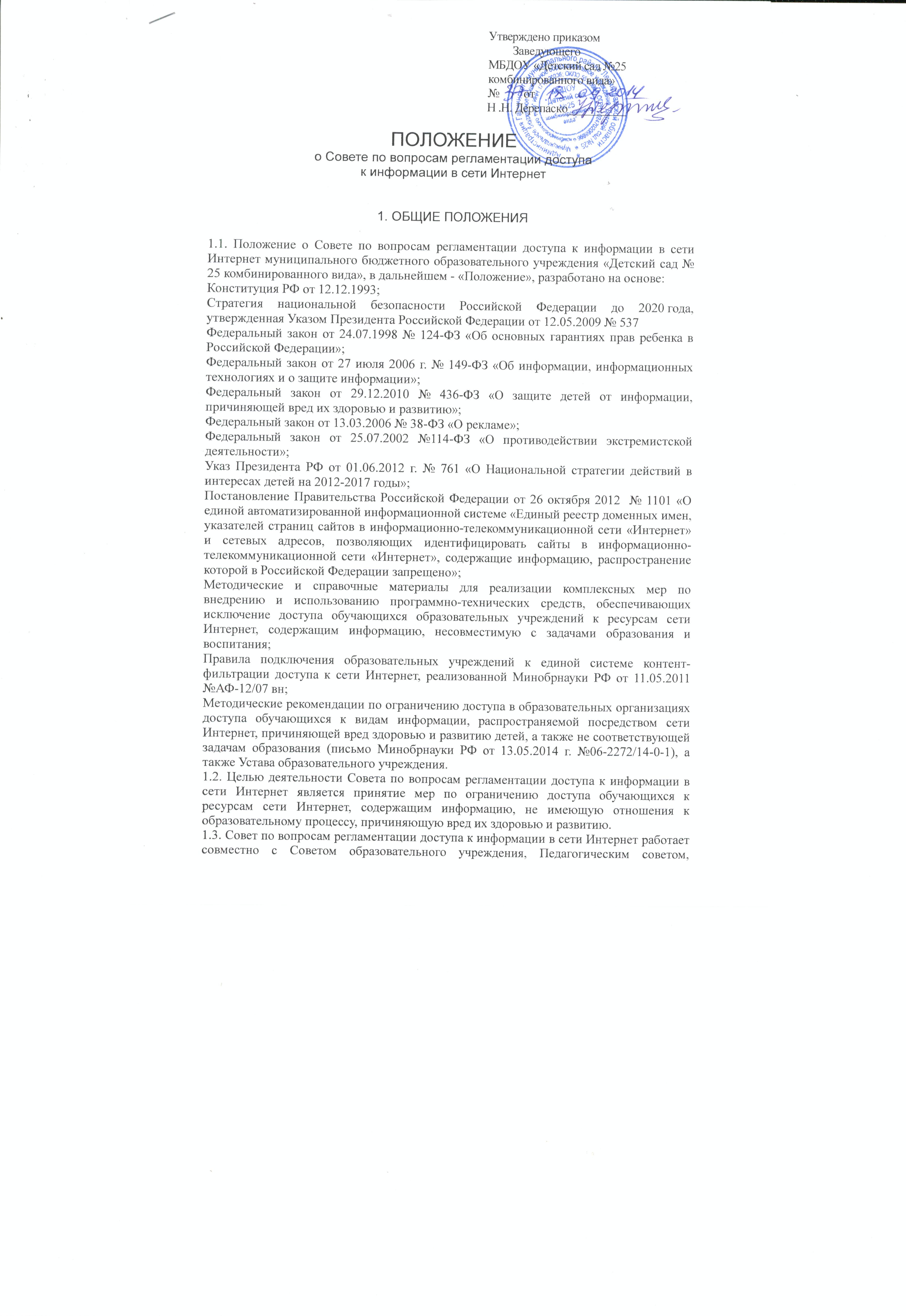 Положение о Совете МБДОУ по вопросам регламентации доступа к информации в сети Интернет (тит лист)